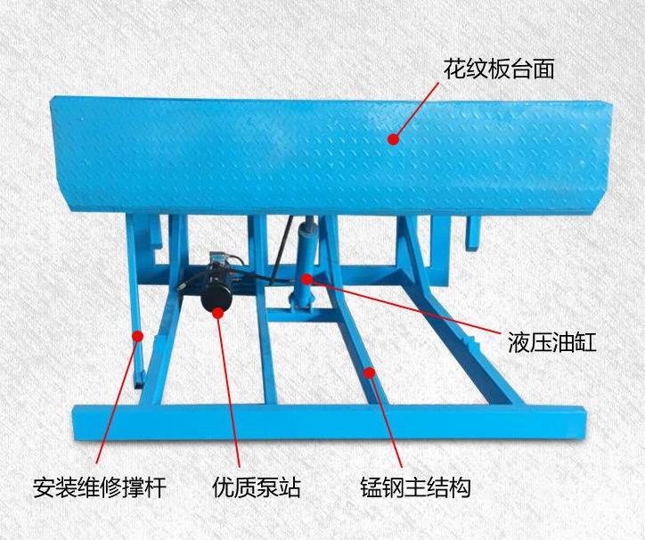 8、電動(dòng)液壓、操作簡(jiǎn)單、高度可任意調(diào)節(jié),調(diào)節(jié)范圍大,提高裝卸效率,節(jié)省人力。